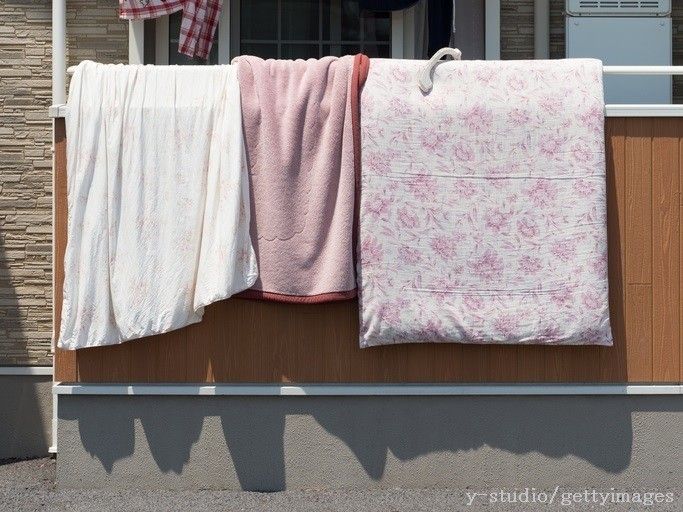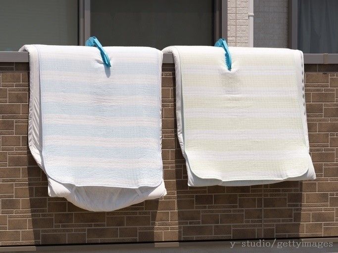 できれば週に1回は天日干しをしましょう。午前10時〜午後3時の間に、片面1〜2時間干すのがおすすめです。夕方以降になるとかえって湿気を吸ってしまうため、取り込む時間帯には気をつけてくださいね。