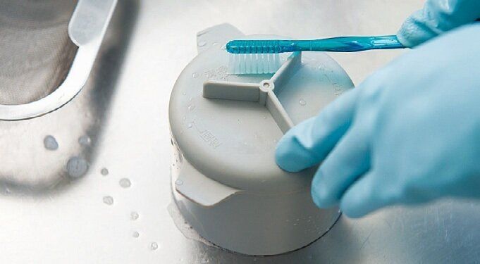 アルカリ電解水(または油汚れ用洗剤)か、それに半量の熱湯を加えて温まったものをフィルターにかけながら、Vカットブラシか古歯ブラシでこする。お湯ですすいだ後、空拭きする。