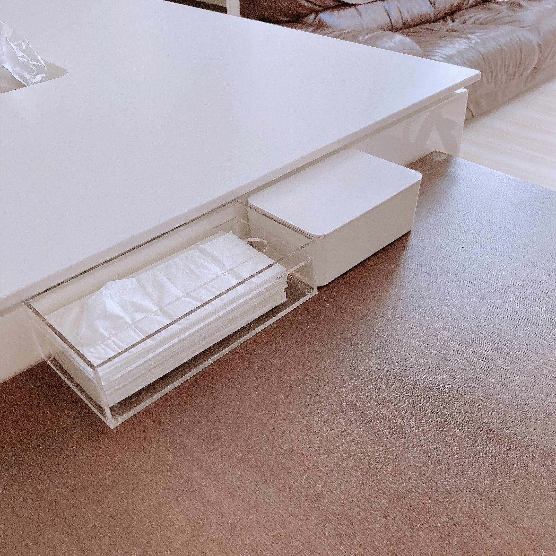 掃除道具はすぐ手に取れる場所に置いておくことで、気づいたときにサッとできるようになります。テーブルまわりはウェットティッシュを置いて家族にも気づいたときにやってもらっています。
