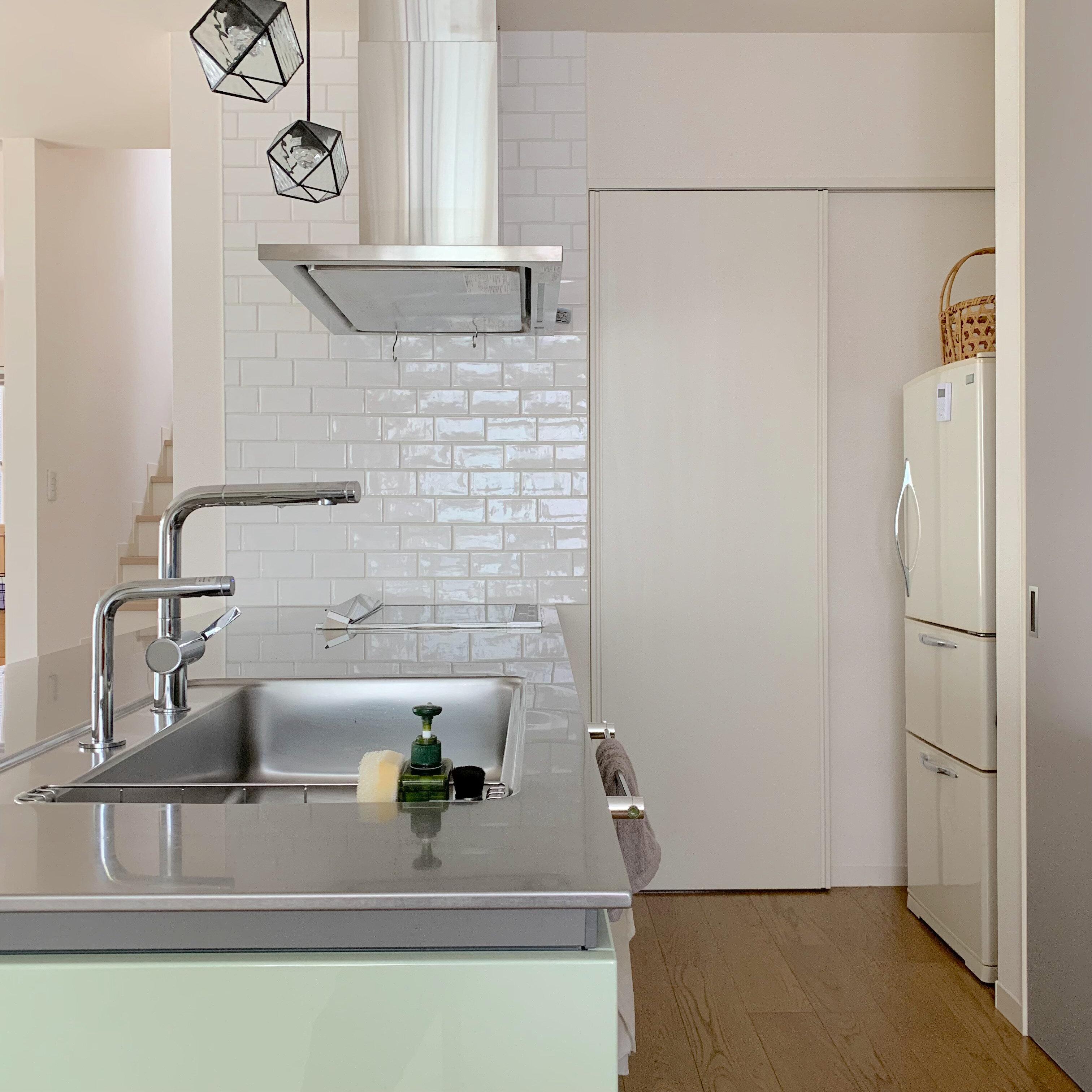 何もものが置かれていないキッチンカウンターの掃除はとてもラクです。汚れに気づいたときにサッと拭くことができ、キッチンをキレイに保つことができます。
