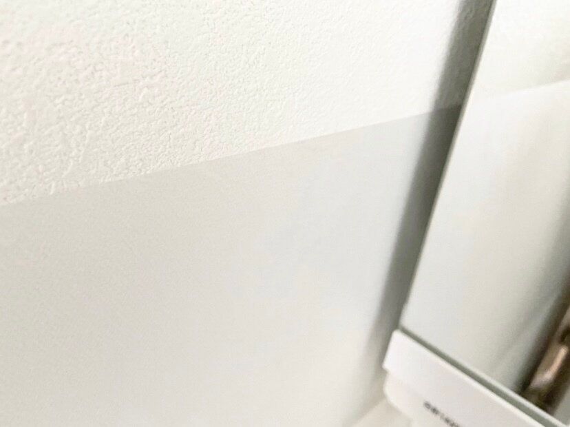 洗面所横の壁紙は常に水ハネにより汚れやすい場所。特にタオル下の壁紙は年数が経つにつれ変色して黒ずみやすくなるので、壁紙保護シートを貼って予防しておくとよいでしょう。