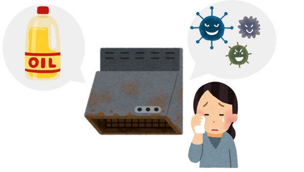 レンジフード(換気扇)の汚れは、故障や換気力低下の原因になるだけでなく、蓄積した油汚れが調理中の食べ物に落ちて食中毒を引き起こす恐れもあります。