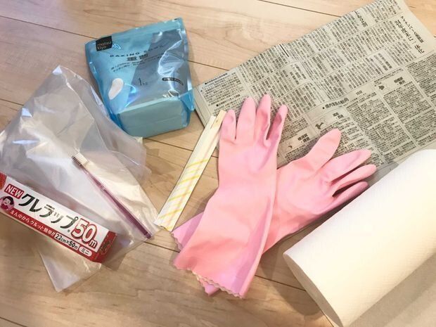 3.キッチン・床に汚れ防止の新聞紙を敷く