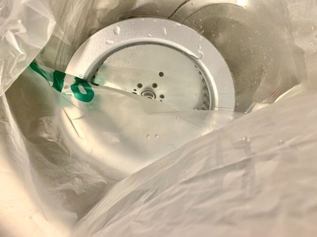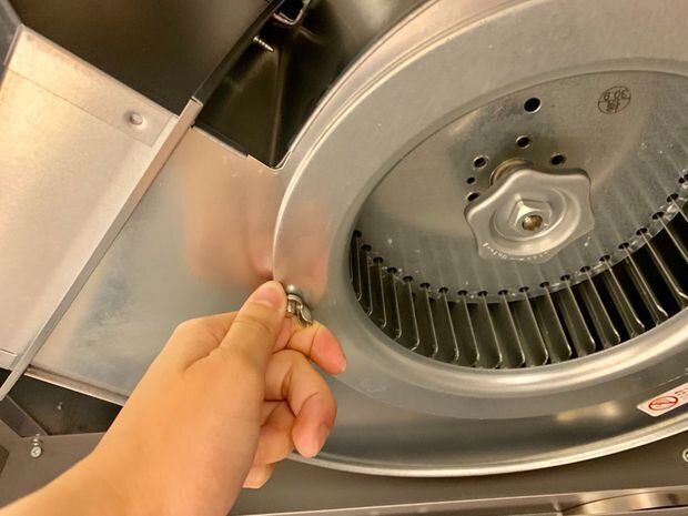 12.部品の水気を拭き取りレンジフード(換気扇)に取り付ける