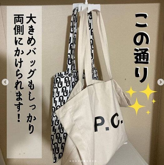 こちらはダイソーの商品で、なんと4連になっているんです。これならカバン以外にもコートや小物までかけられて省スペースになりますね!