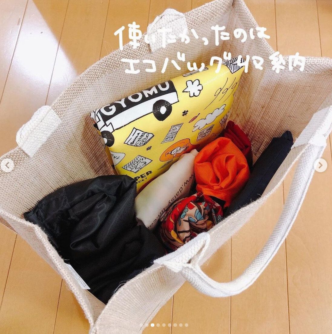 無印のジュートバッグはエコバッグ収納にも◎