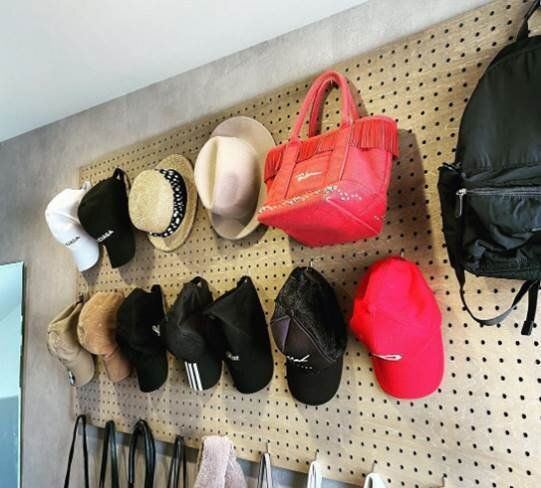 こちらは有孔ボードとフックを使って、カバンと帽子の収納スペースをつくったアイデア。有孔ボードは引っかける場所も自由自在なのでかなり便利なアイテム。すっきりと小物を収納できるだけでなく、お気に入りのカバンや帽子たちがまるでインテリアのよう。