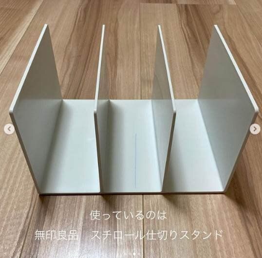 こちらは無印良品でも人気の「スチロール仕切りスタンド」。シンプルなデザインと使い勝手のよさが人気です。