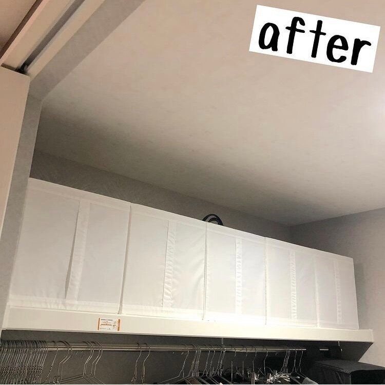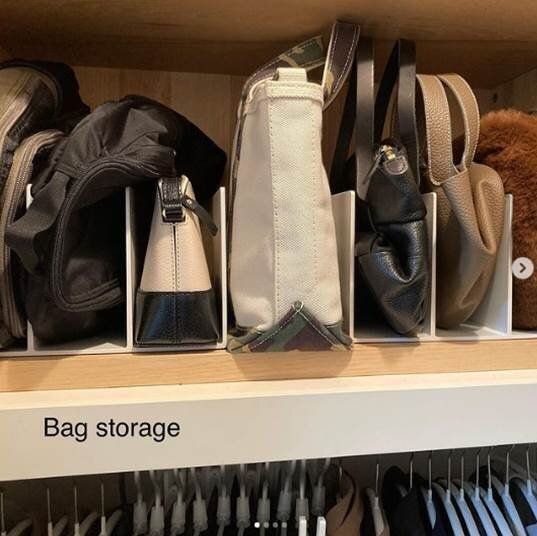 こちらをバッグ収納に応用したアイデアがこちら。クローゼットの上段にすっきりと並び、取り出しやすい、しまいやすい、管理もしやすいといいとこずくめ。これは真似したくなるアイデアですね。
