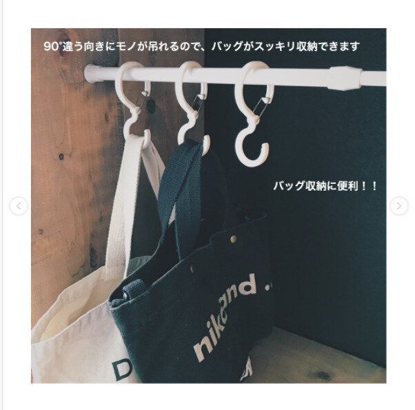 バッグをクローゼットの中でかけて収納しているというかたも多いかもしれません。S字フックにかけるとバッグが前を向いてしまい、回転フックでは回ってしまう…でも、こちらのリングフックならバッグをすべて同じ方向に向けて収納することが可能です。ポールに通して使うフックなので、固定されているポールには使えませんが、突っ張り棒などを取りつければ、ちょうどよいバッグの収納として使えるかもしれませんね。