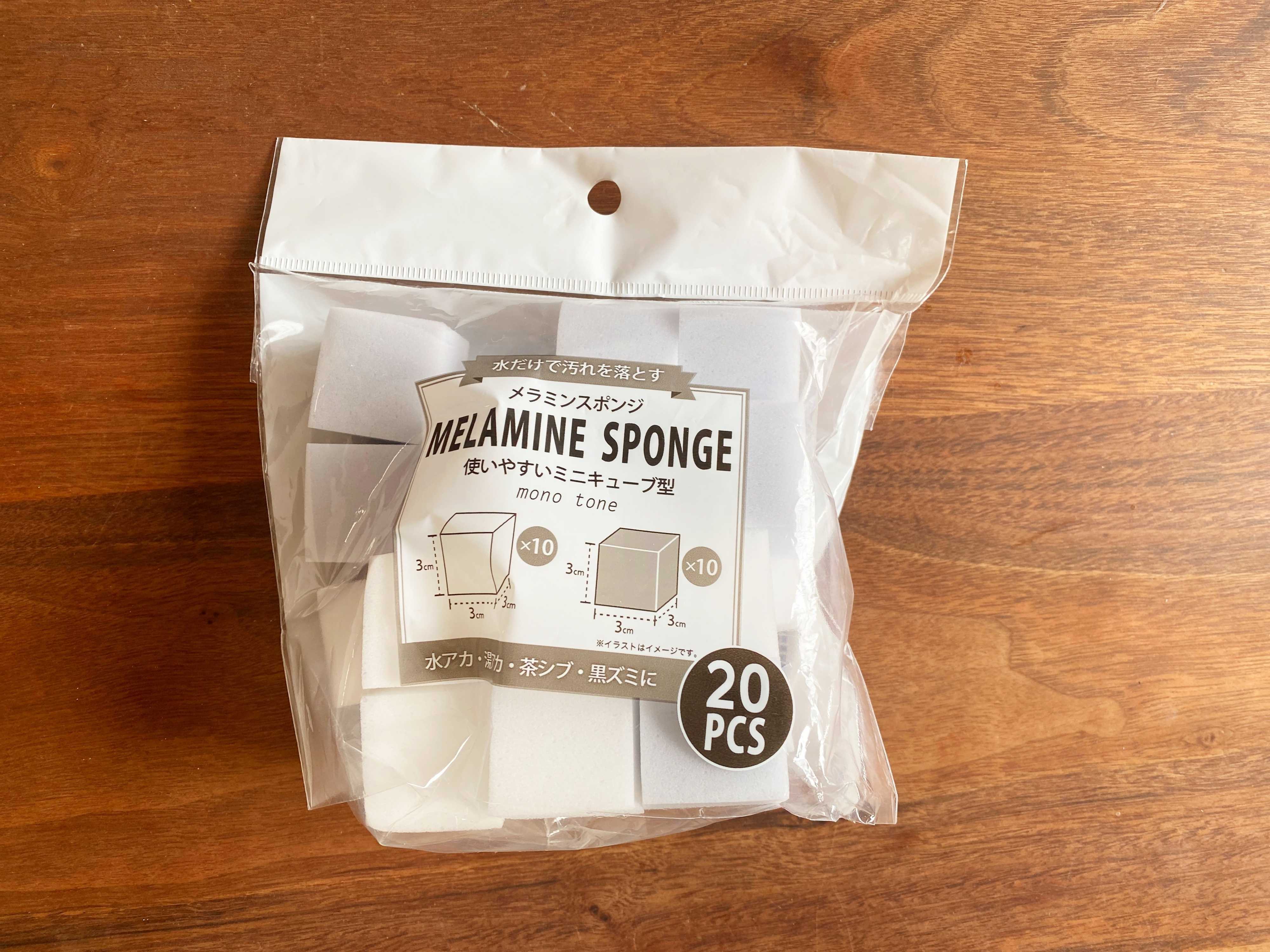 いまや掃除グッズの定番商品ともいえるメラミンスポンジ。100円ショップでもさまざまな商品が見つかりますが、おすすめしたいのが「メラミンスポンジ ミニキューブ型」。3cm×3cmと比較的小さめサイズのメラミンスポンジです。