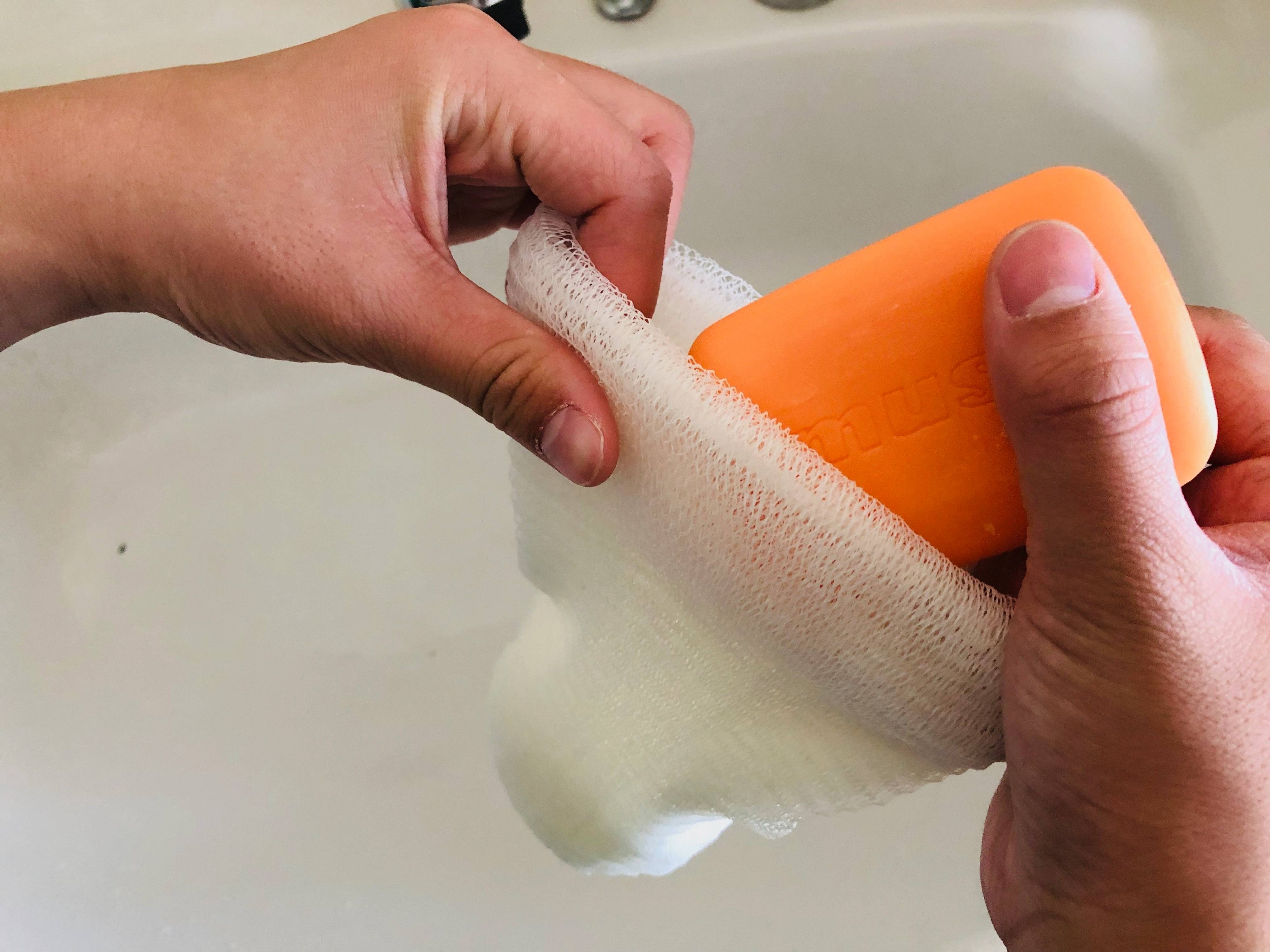 ネットは袋状になっているので、使うときは中に石鹸をイン。