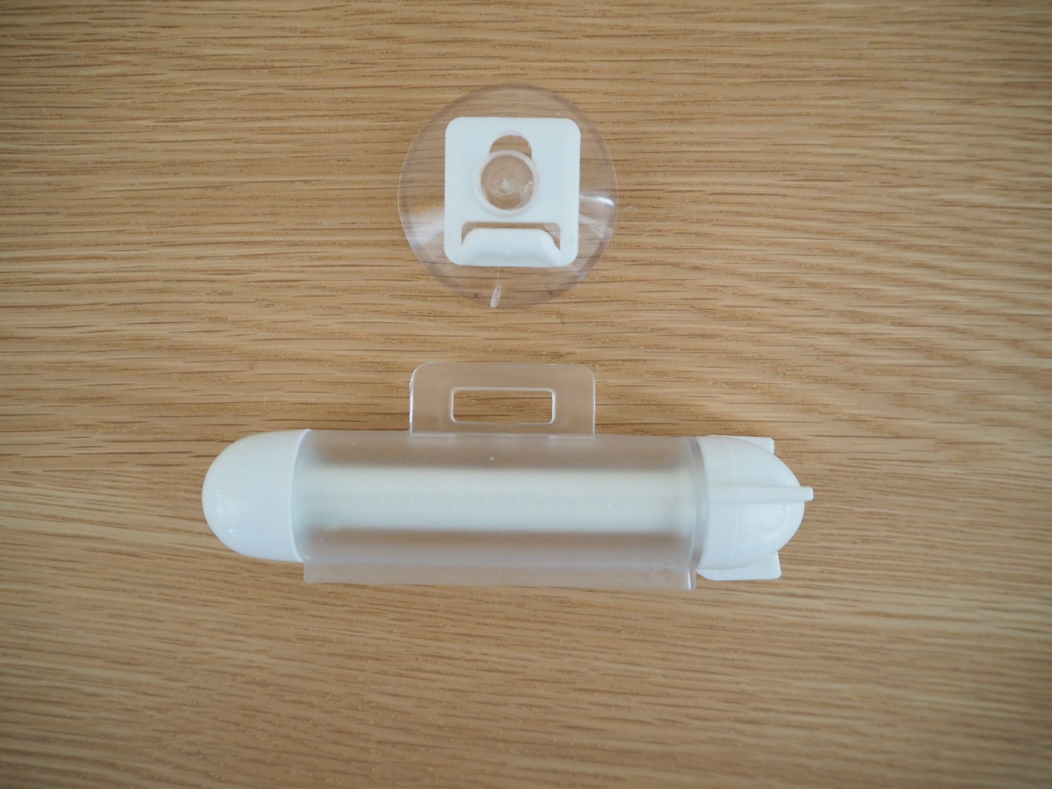 ダイソーの「チューブ絞り」(¥100・税別)は、歯磨き粉や化粧品、調味料の絞りだしに便利なアイテム。絞りだす本体と引っ掛けられる部分が1セットになって販売されています。色味もシンプルで取り入れやすい♪