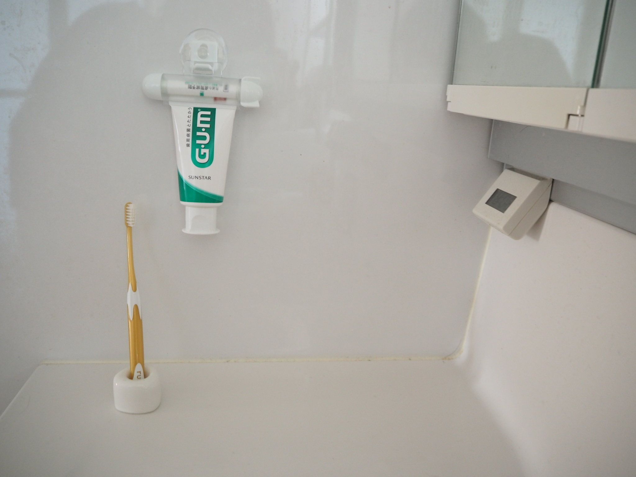 引っ掛けておける部品もついてくるので、写真のように引っ掛けておくこともできちゃいます!ユニットバスなど洗面台が小さい場合にも重宝します♪