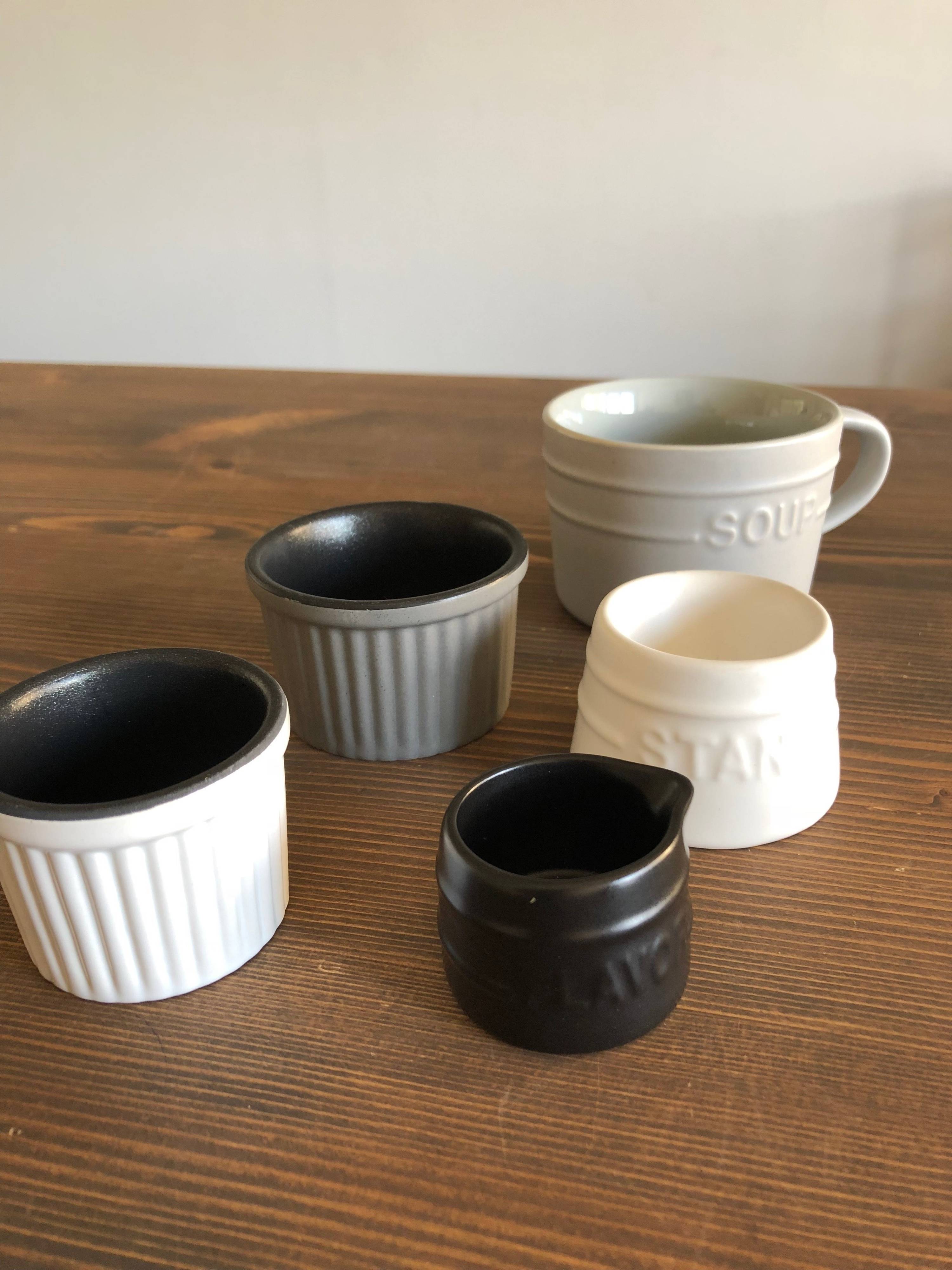 合わせやすいモノトーンの器もあります!写真のように、いろいろなカラーで合わせるのもいいかも。
