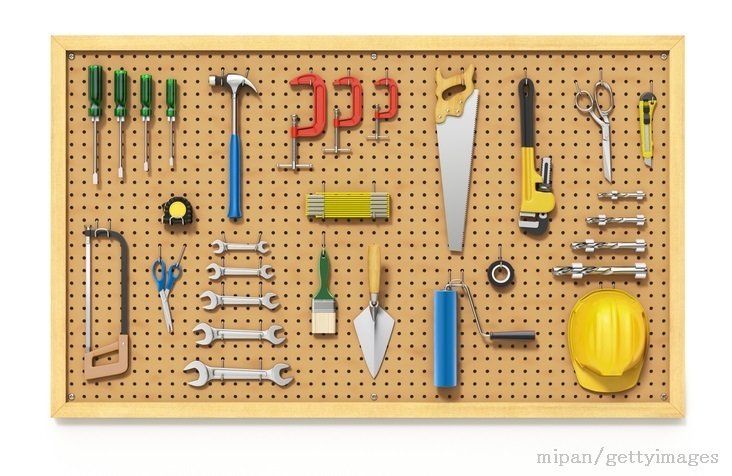 有孔ボードとは多数の穴が空いた板のことで、ペグボードやパンチングボードと呼ばれることもあります。壁に取り付けて、その穴にフックを引っ掛けたり、かごや棚をつけたりすることで、おしゃれな壁面収納ができることで人気です。