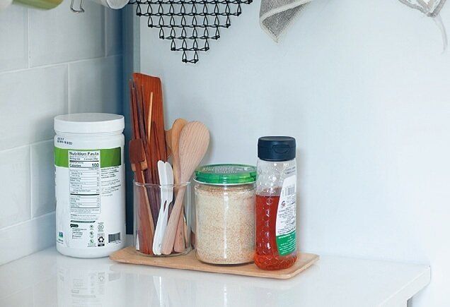 おさよさんのキッチン収納のテーマは、「朝ここに立つと気分が上がる」こと。「苦手な朝こそ、工夫次第で気持ちよく!」