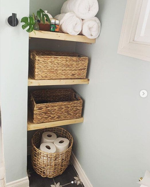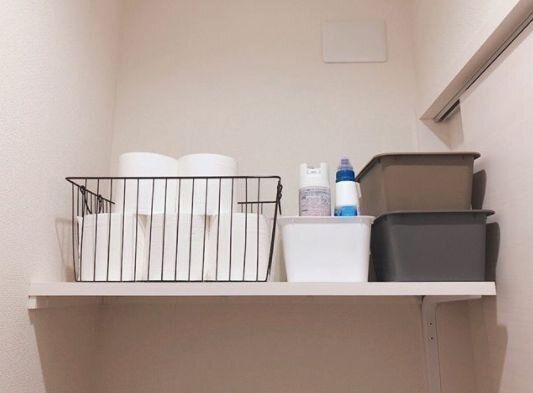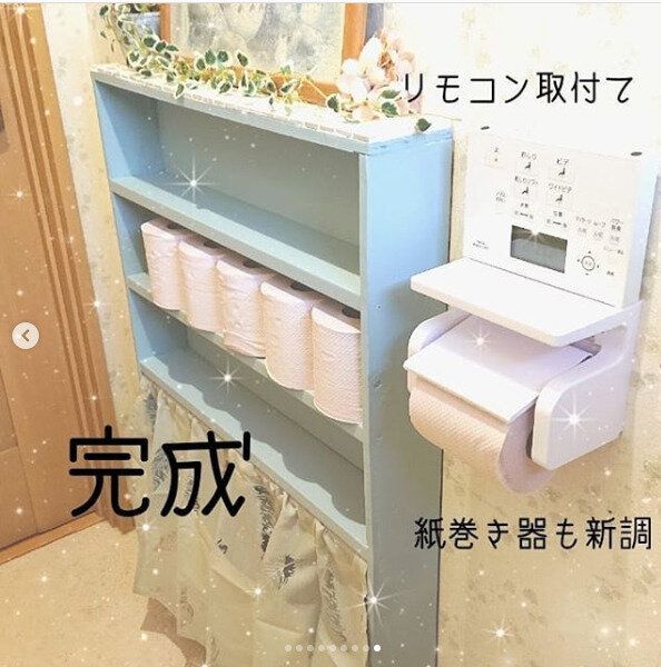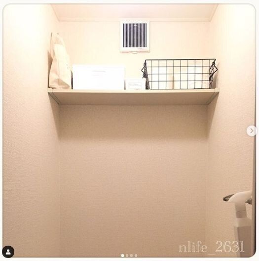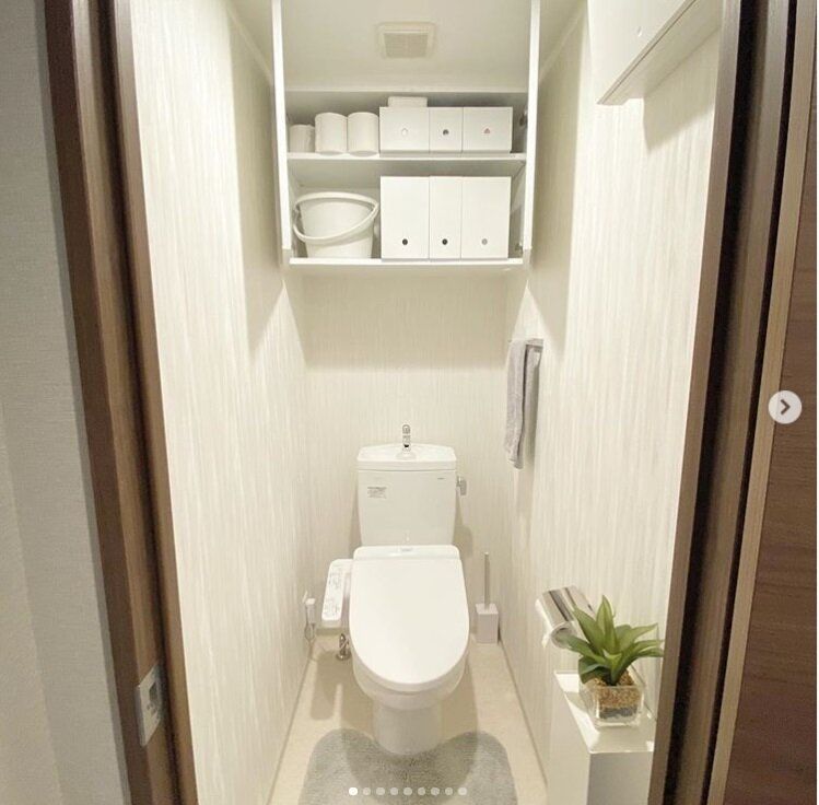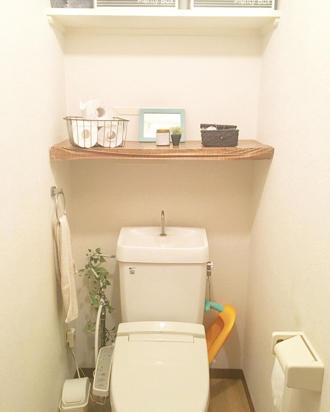 こちらはトイレの収納というより、まさに素敵なインテリアですよね。トイレットペーパーも雑貨風に飾ることで、トイレがちょっとウキウキするスペースになりました!
