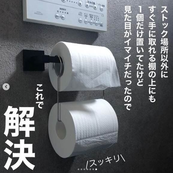 人気のトイレットペーパーホルダーは、縦に積み重ねていくタイプなので省スペースでストックの管理が可能。上段にはちょっとした小物を置くことのできるスペースもあり、スタイリッシュさも魅力のアイテムです。