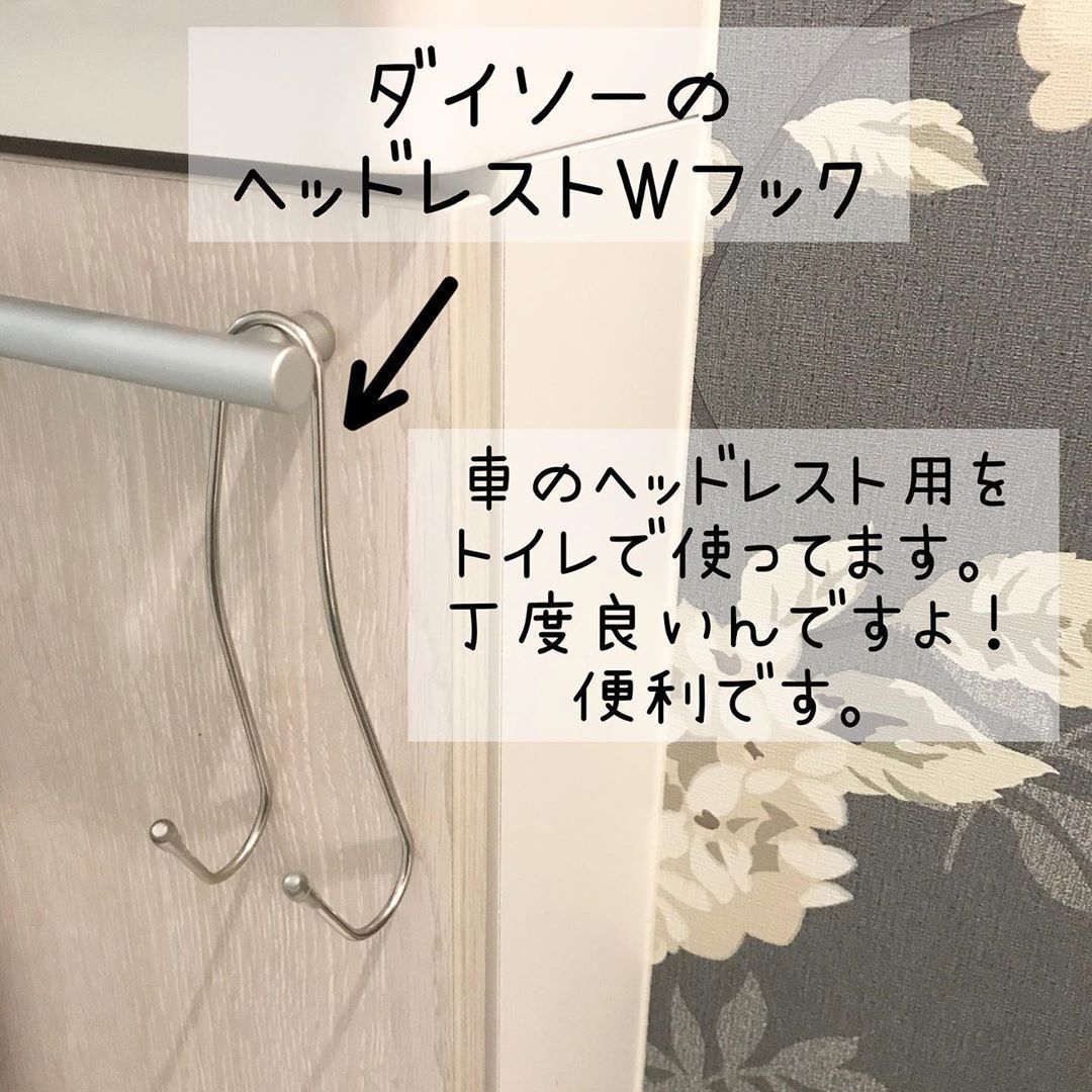 次のトイレットペーパーがさっと取れるストッカーはやはり便利です。こちらの超シンプルデザインのストッカーは、セリアの「トイレットペーパーストッカー」。ものが多くなるトイレ収納だからこそ、こういった潔いすっきりデザインがカッコイイですよね!