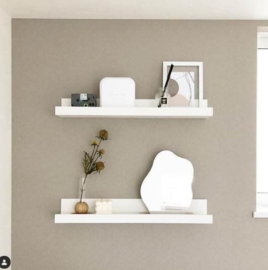 突っ張り棒と板を使えば、手軽で簡単に収納棚が完成します。黒の突っ張り棒を使用することで、板の木目が映えて高級感のある仕上がりに。自分の好きな高さに好きな分だけ棚を増やせるので、使い勝手もよさそうですね。