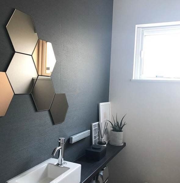 トイレットペーパーがぴったり&すっきり収まる六角形の木箱を壁に取りつけて、壁面収納にしたアイデア。インテリア性も高く収納力も抜群ですね。こちらは、雑貨屋さんで購入した木箱を後づけしたそうです。