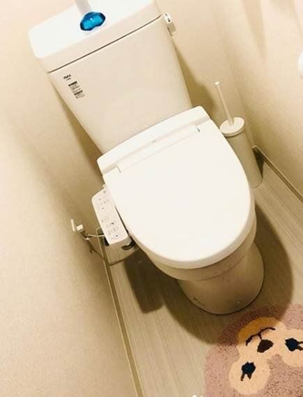 いとうりょうこさんは、新居のトイレの床模様がかわいかったことから、トイレマットや便座カバーをつけるのをやめました。マットを置かないことで、汚れや臭いが気にならなくなり、掃除が楽に!来客時以外はスリッパも置かないようにし、トイレ内に置くものは最低限にしているのだとか。夫や子どもが立って用を足すというかたにもおすすめです。
