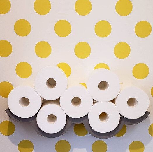 まるで芸術的なインテリアのように見えるトイレットペーパーホルダーは、ペーパーを積み重ねることで雲の形になる見せる収納グッズです。ポップな壁紙にもシックな壁紙にもマッチし、遊び心あふれるデザインが素敵ですね。