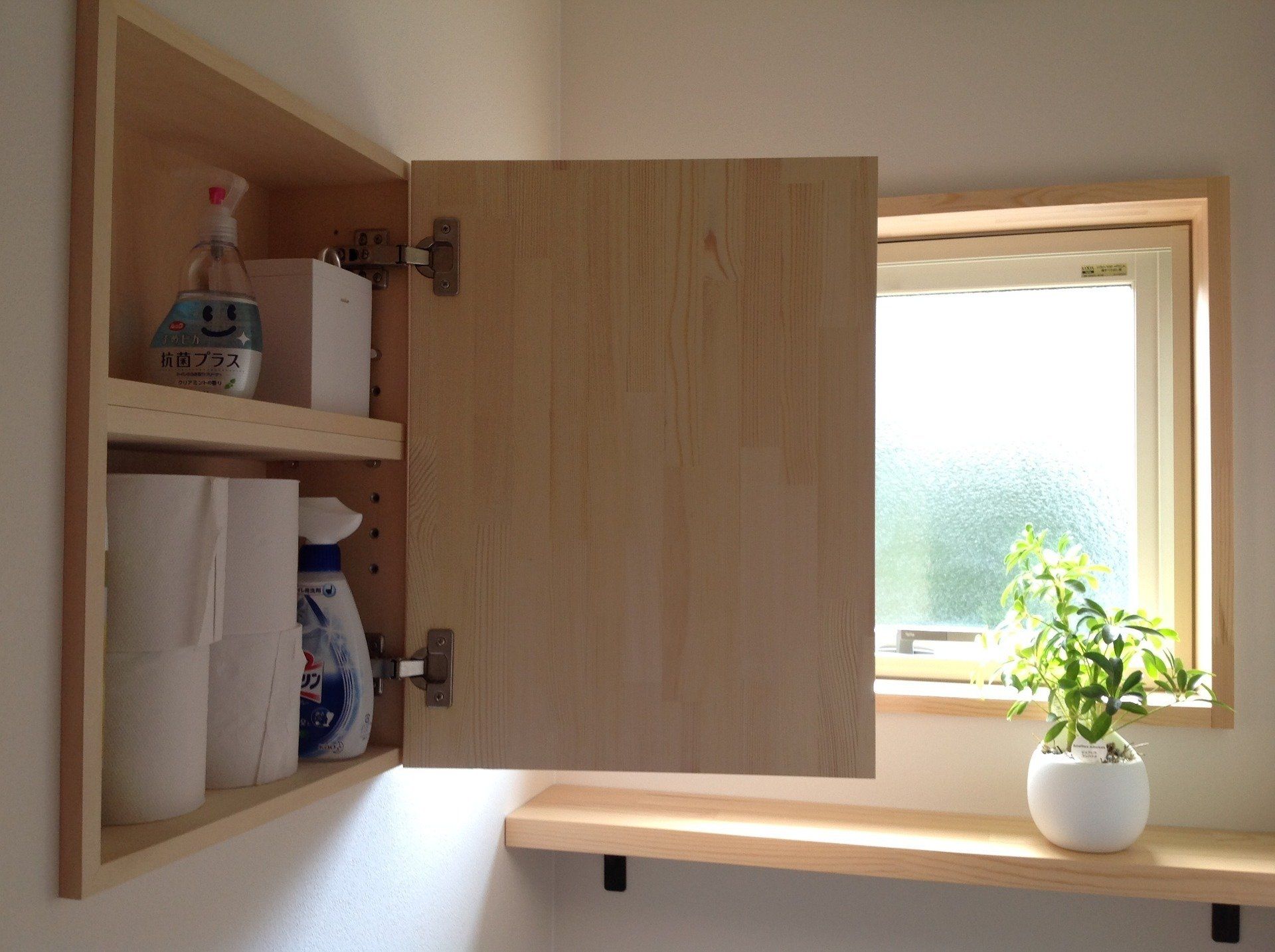 もともとトイレに設置されていた埋め込み形のトイレ収納を撤去して、自分好みにDIYでつくり変えたアイデアです。古くなりトイレの印象も暗くなっていたのが、DIYで新居のトイレのような明るい雰囲気に大変身です。