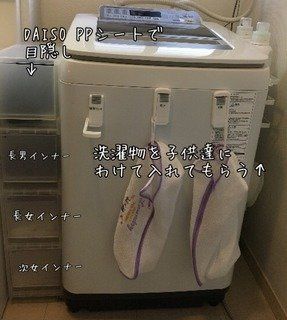 子どもが多いと洗濯ものの量は増えるし、汚れものも増える!ごちゃ混ぜになると衛生面も心配……。だったら汚した子どもたちに責任もって、分別もしてもらおう作戦!このシステムを導入したことで、洗濯ものがあふれかえることはなくなったそうです。