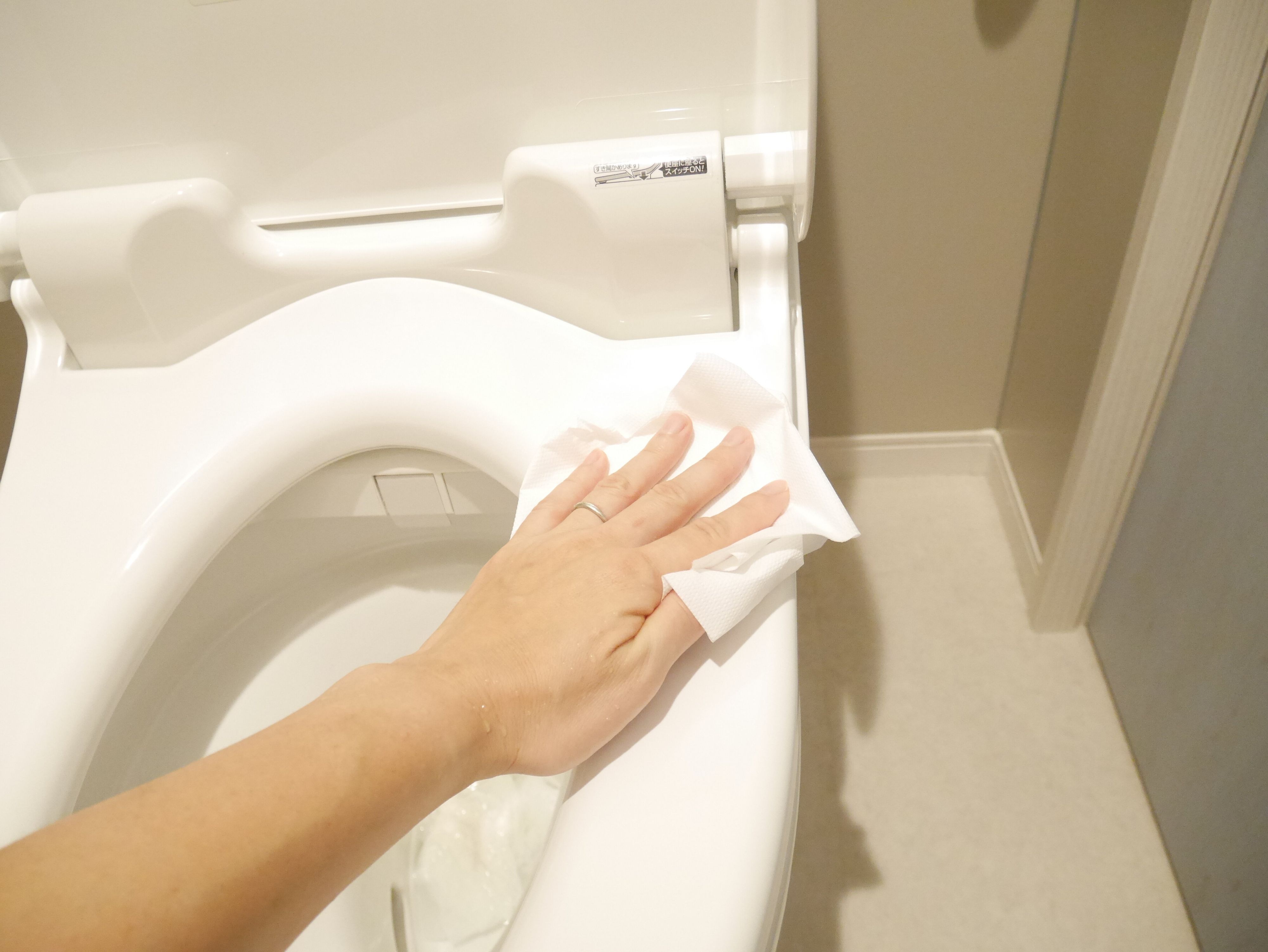 • 《ここまでできる!ポイント2》トイレのフタは外して拭くことができる!