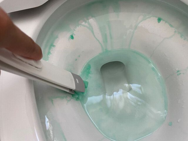 サッと掃除のタイミングで汚れている場合は、トイレ用洗剤をひと吹きしてから便座洗浄で流す、必要ならばトイレブラシで簡単に掃除します。