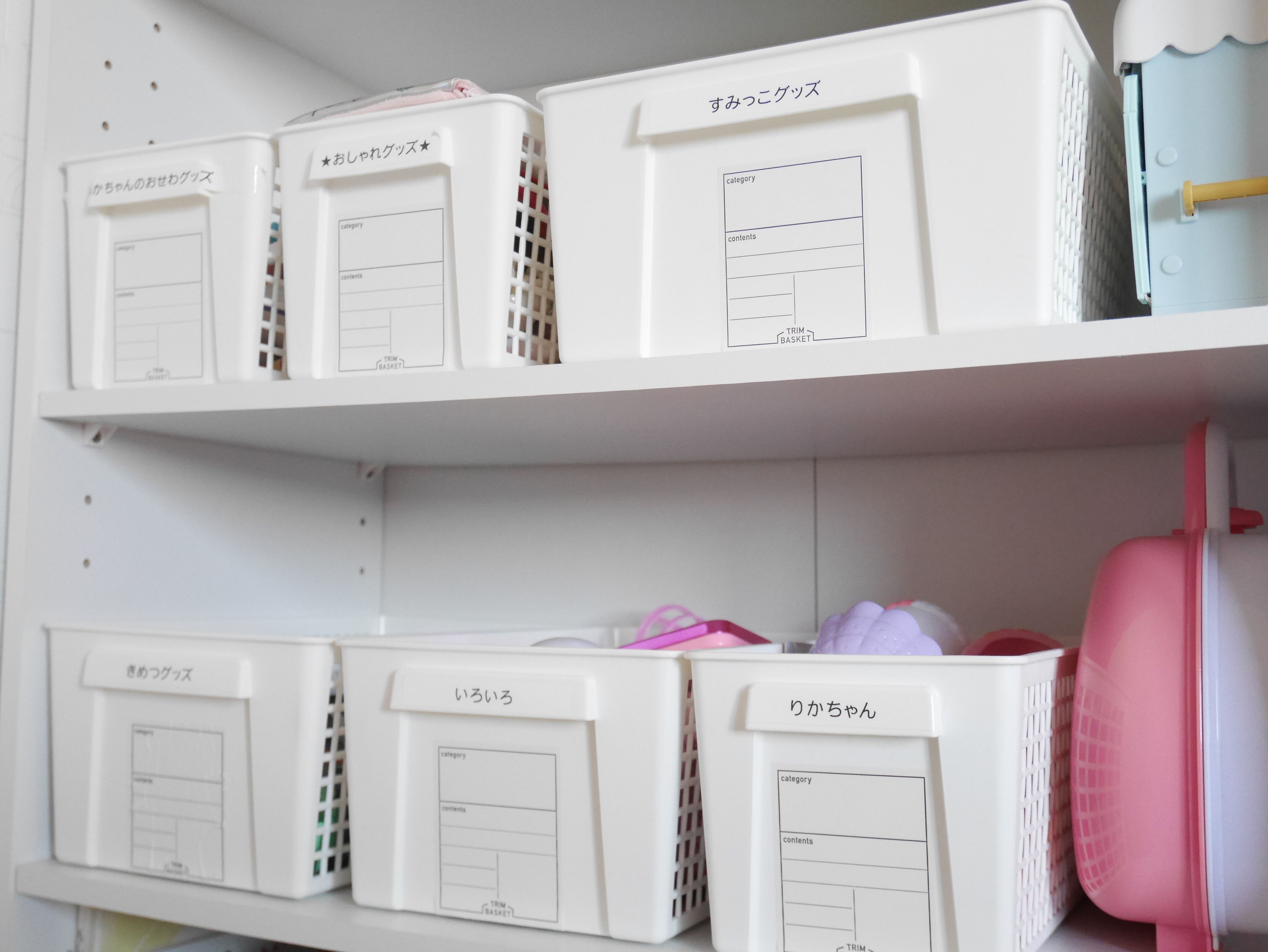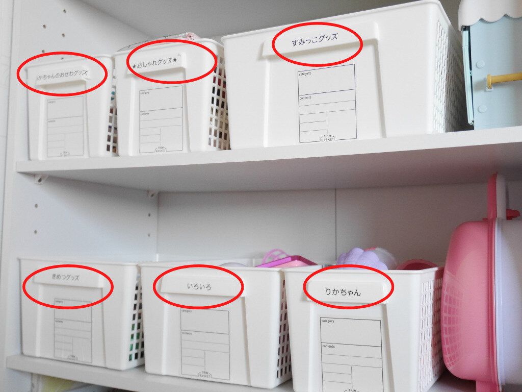 ラベリングすることで、出したおもちゃを片付ける場所が分かり、複数の種類のおもちゃが混ざり合ってごちゃごちゃになることを防げます。