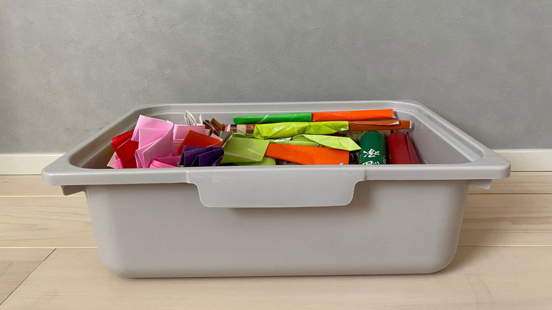 とりあえずとっておきたいものをポンポンと入れてOKにしているので、新しく入ってきてまだ定位置を作っていないものでもそのボックスに自分たちで片づけるようになりました。