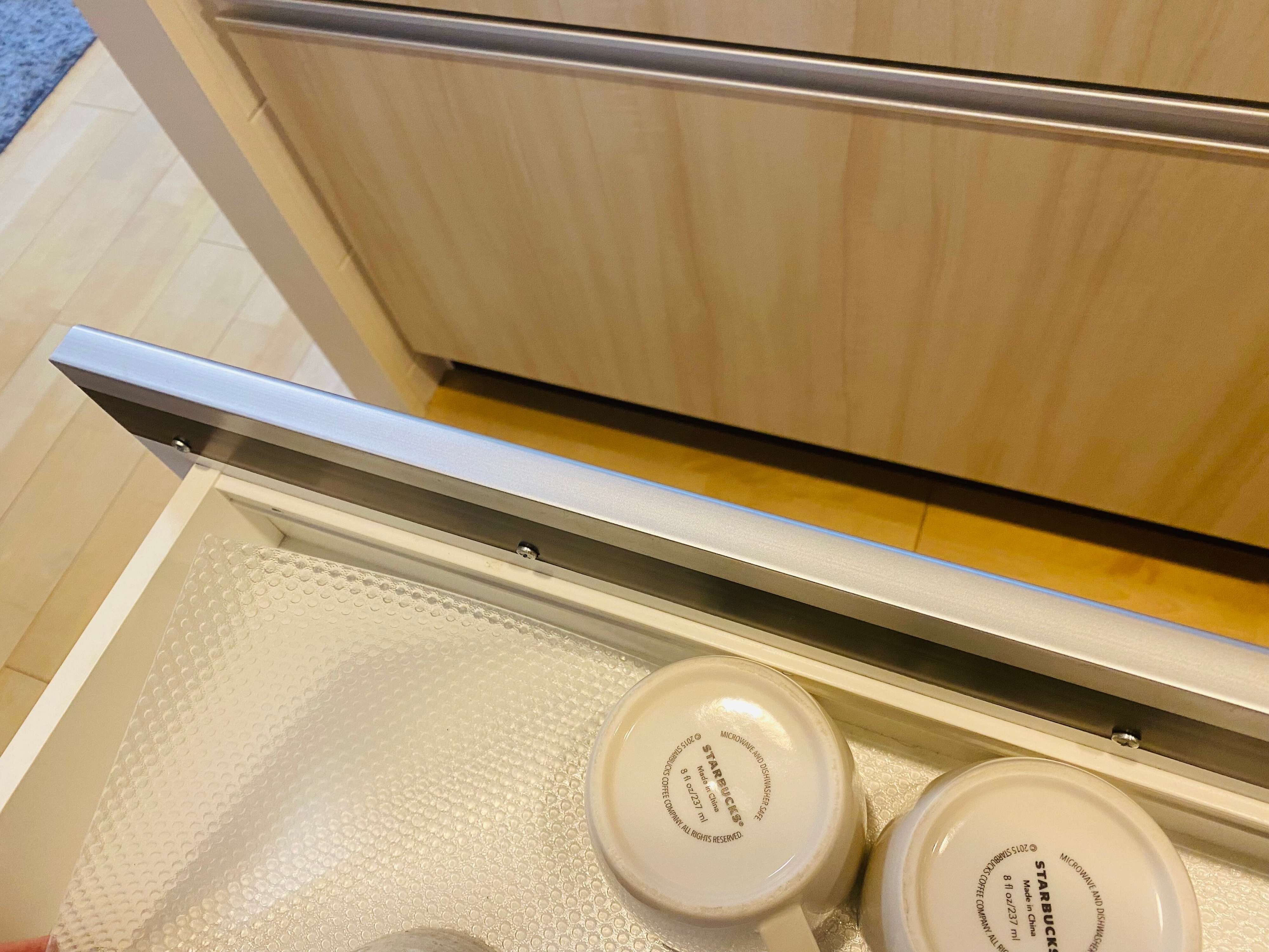 未対策であれば食器棚は倒れなくても、引き出しを開くと食器は散乱・破損し片づけに四苦八苦となりかねません。