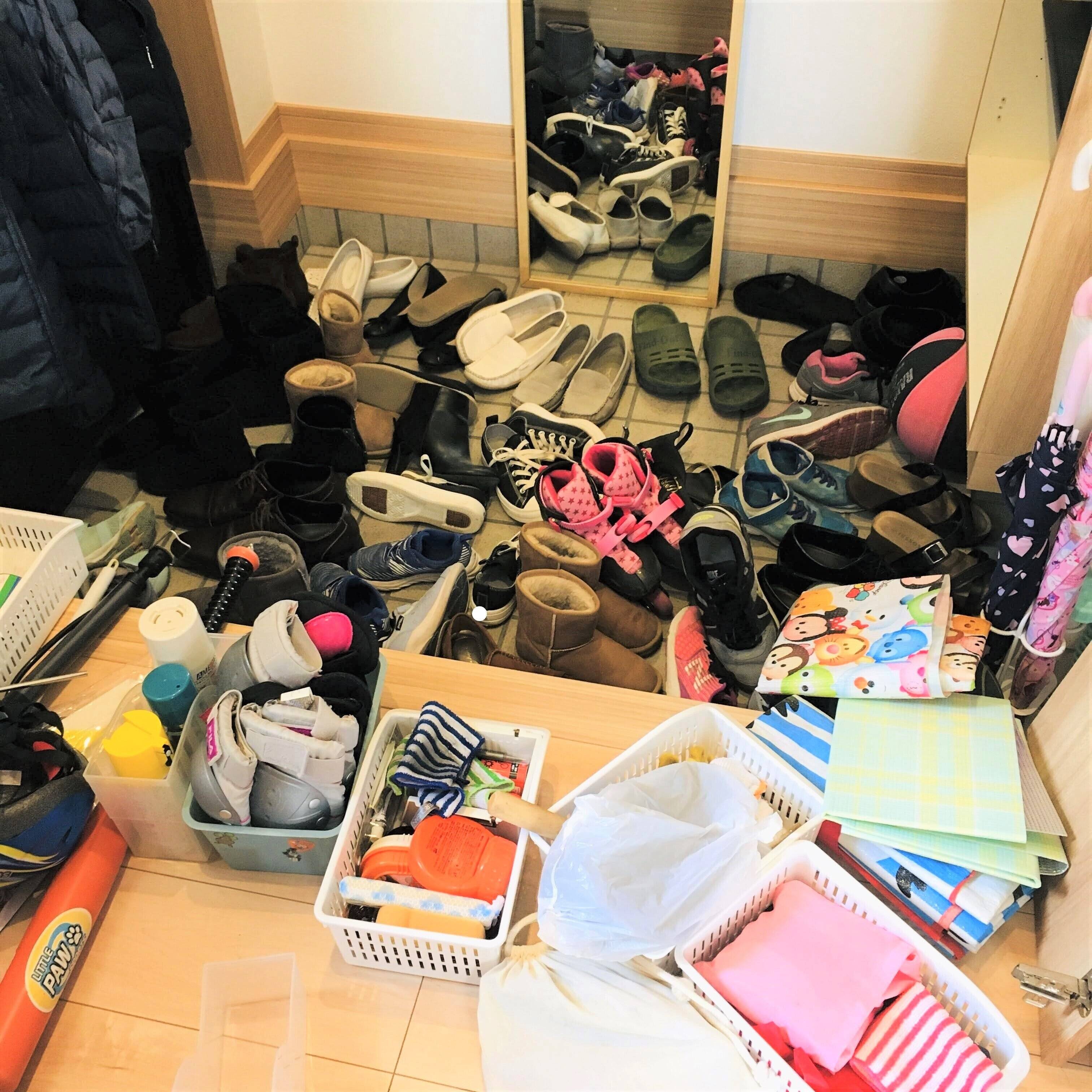 玄関は家の顔とも言える大切な場所ですよね。でもわが家の玄関は、いつも脱ぎ散らかした靴でゴチャゴチャ。