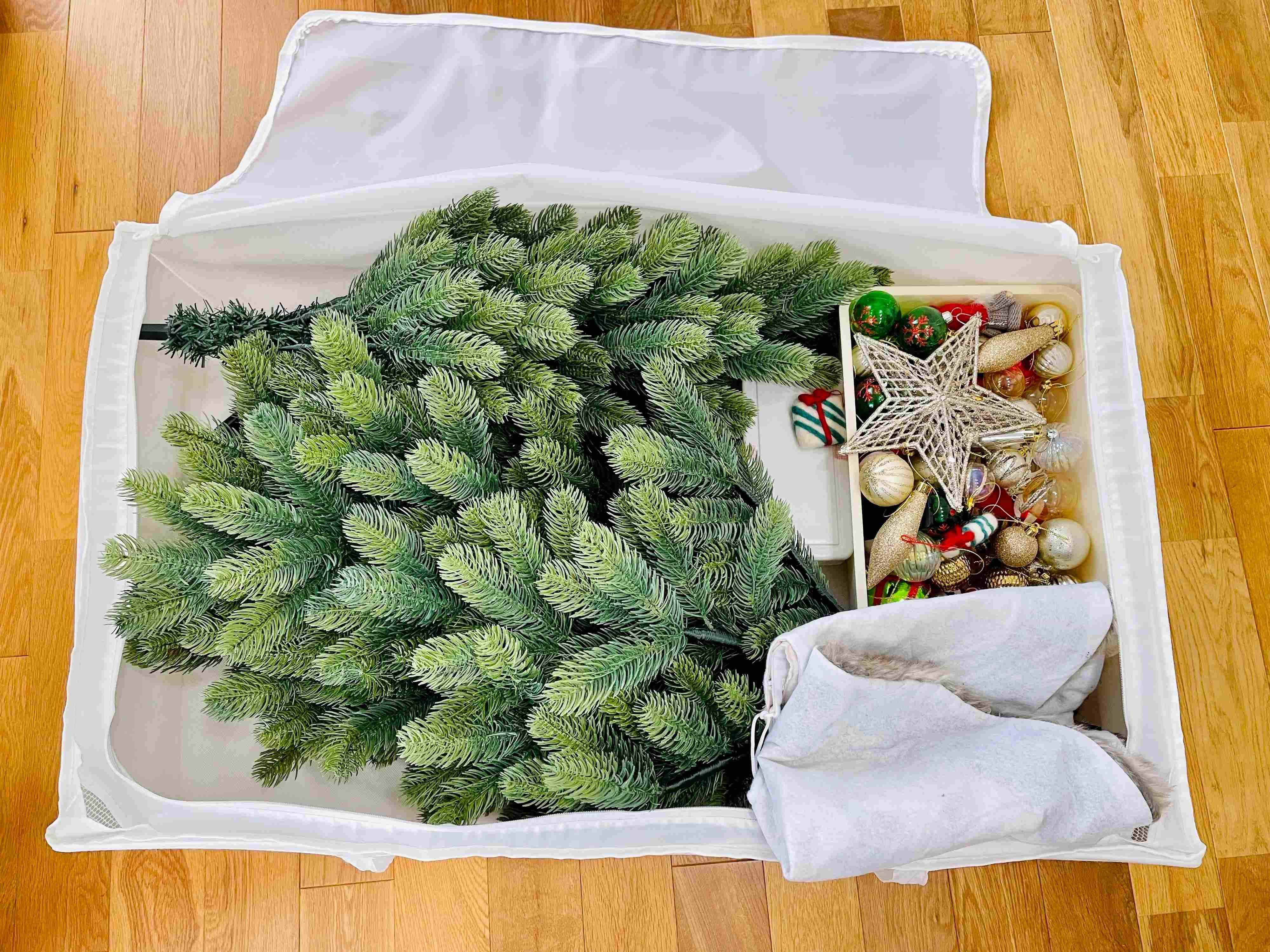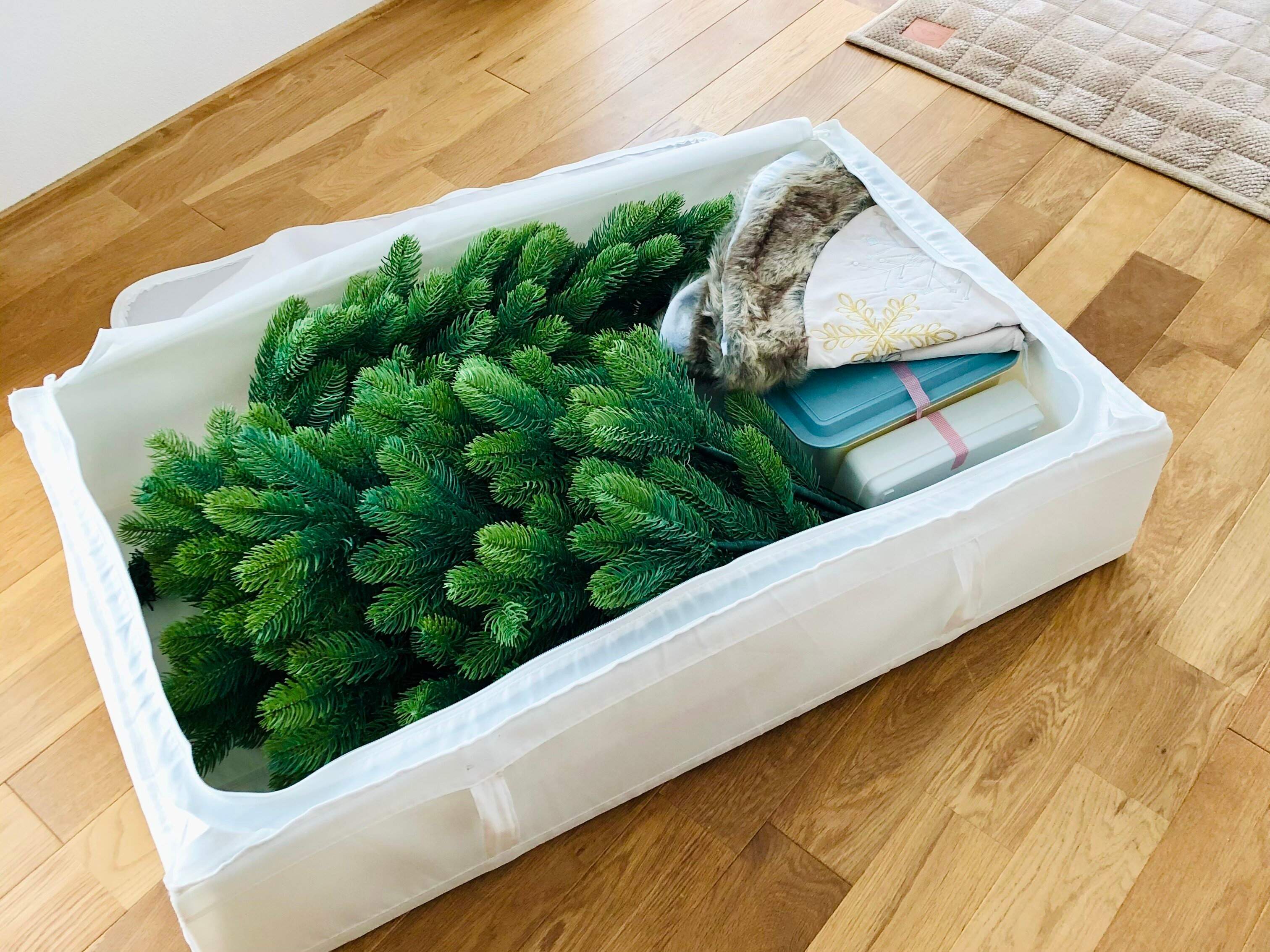 ツリーもオーナメントも、まとめてスッキリ収納できる【IKEA】SKUBB。サイズも豊富なので、ツリーの大きさに合わせて選べます。