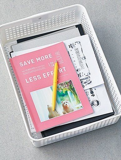 A4の書類がそのまま入る浅いケース。散らかるDMやプリント類の一時置きにもおすすめ。棚やラックに置けば引き出しの代用にもなります。(約幅24.4×奥行き33.2×高さ8.7㎝)¥108/イノマタ化学