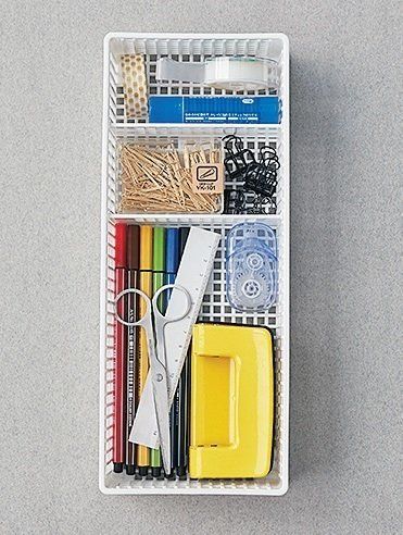 仕切りは1マスごとに動かせて、好きな幅に仕切れる優れ物。カトラリー、薬類なども思いどおりに片づくので、引き出し整理に最適です。(約幅12.2×奥行き30×高さ6.2㎝)¥108/サナダ精工