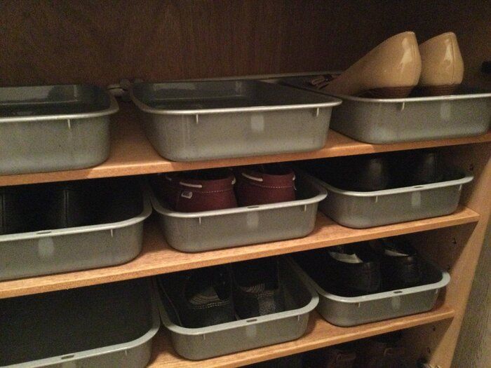 サンキュ!STYLEライター渡部夏代さんは、靴箱をよごさないために、靴の裏を定期的に拭いてから靴箱にもどしているようです。しかし、大変な作業のため家族には強要できない……そこで、靴箱にトレーを設置し、その中に靴を収納するようにしているのだとか。靴箱の中に直置きしないだけできれいを保てるといいます。
