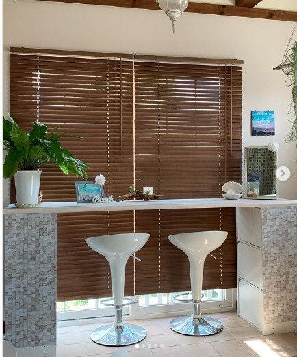 扉つきのカラーボックスにリメイクシートを貼って天板を取りつければ、こんな素敵なカウンターが完成。まるでどこかのリゾートのバーカウンターみたい!ここで素敵なコーヒータイムはもちろん、夜はおうちカクテルもいいですね。