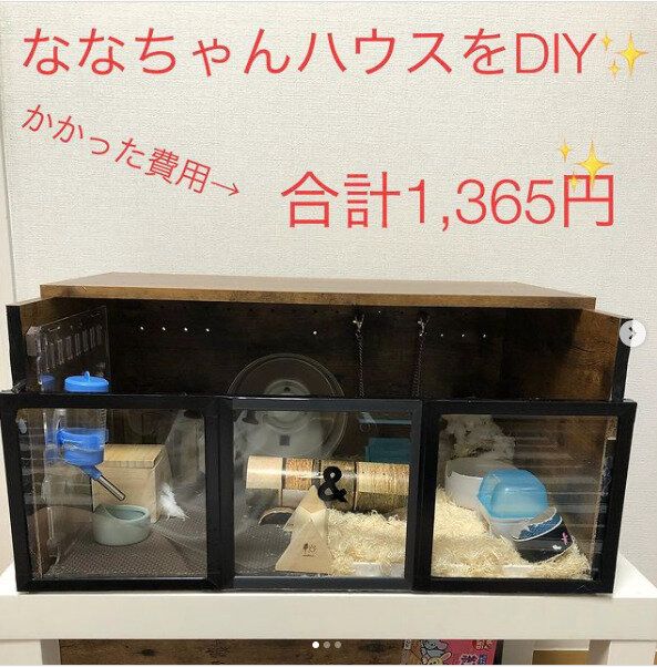 こちらはなんとカラーボックスを使ったハムスターハウス。たった1,365円でできるので、ペットショップでケージを買うよりお安いですね♪DIY好きの人にはおすすめ!