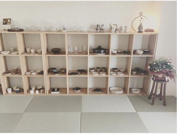 こちらでは、食器類のディスプレイラックとして活用しています。おうちで使えば、一気にお店屋さんのようなこなれ感がアップ♪