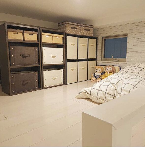 最後にご紹介するのは、なんとカラーボックスでできた子ども部屋の仕切り壁です。ただ積み上げるだけだと危険なため、ビスなどでしっかり地震対策も行いましょう!