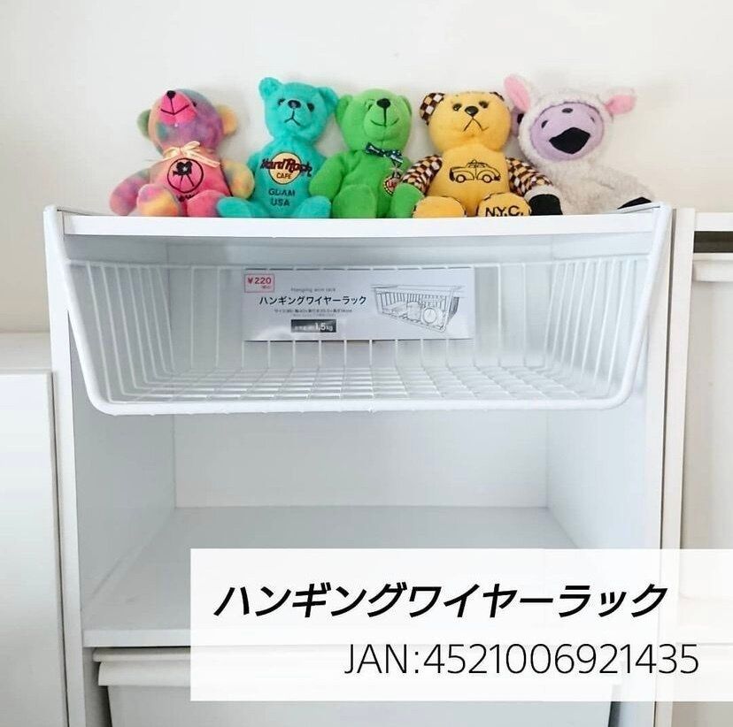 キャンドゥのハンギングワイヤーラックはカラーボックスにシンデレラフィットします。引き出し式で使えて、中も見えるので子ども部屋の収納にもぴったりですね。