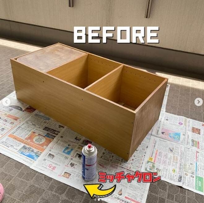 プライマー(下塗り用の接着剤)を塗るというひと手間をかけているので、できあがりの質感が違いますよね。まるで新しく買ったカラーボックスのよう!またこれからも長く使えそうですね。