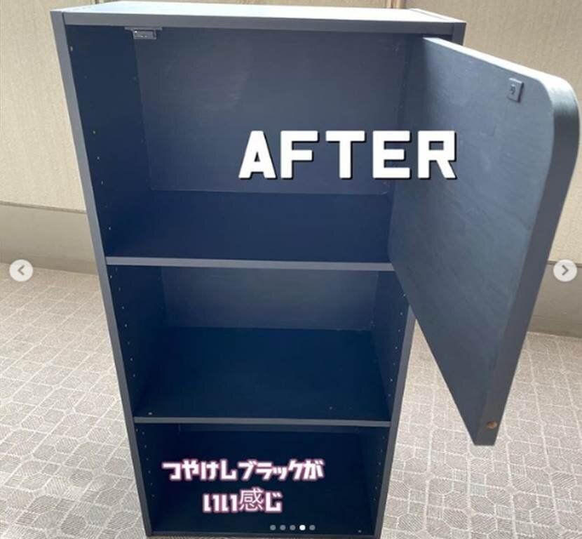カインズのカラーボックスをリメイクし、2つを合わせて扉をつけると、まるで既製品のようなクオリティの収納棚に。カラーボックスが元になっているとは分からないレベルですね。中側には段ボールに黒いリメイクシートを貼ることで、カラーボックス本来の色味をカバー。より本格的な仕上がりへと導いています。自分の部屋にあった棚がなかなか見つからない…という人は、ぜひ参考にし、オリジナルの棚を作成してみてはいかがでしょうか。
