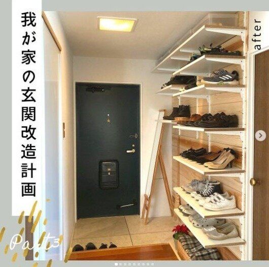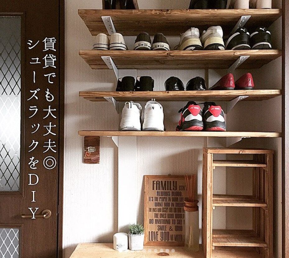 こちらはシューズラックをDIYした例です。靴箱に入りきらない靴は、新しくシューズラックをつくって収納するのもよいですね!