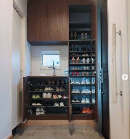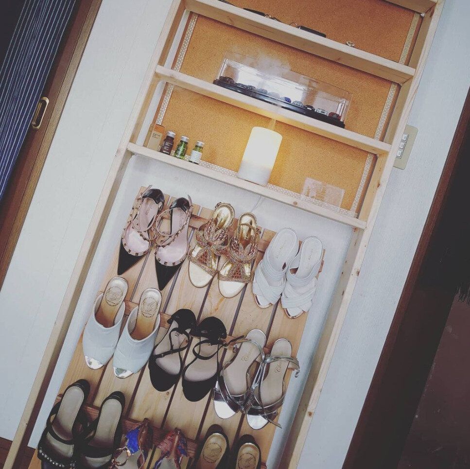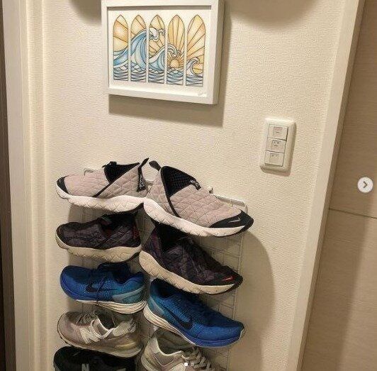 まるでお店!DIYで壁一面を靴収納スペースに大変身