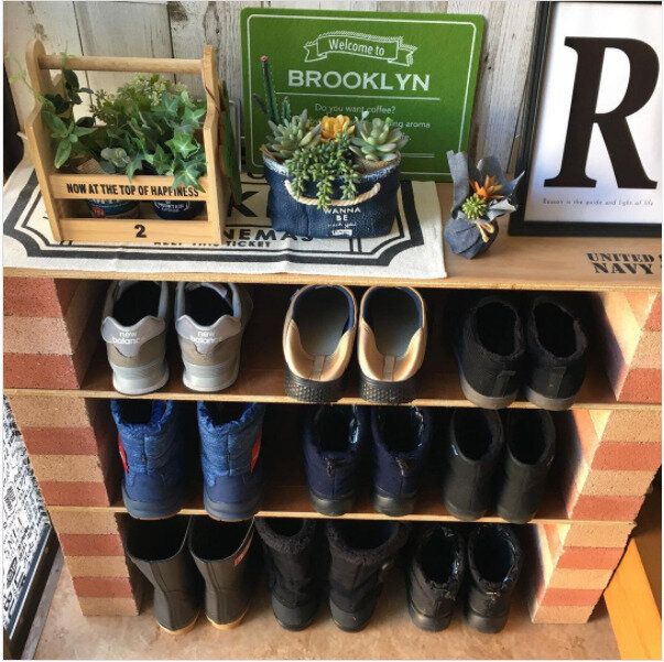 レンガを活用したシューズラックがおしゃれで便利